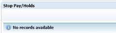- Click OK. The Stop Pay/Holds field must reflect No records available.