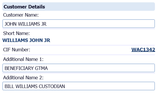 - Title the account in the minor's name and list the custodian's name. {Client's name} displays in the Customer Name field.