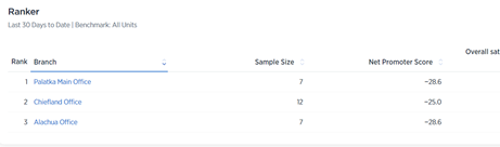 - Click on any Driver to rank your offices according to that Driver.